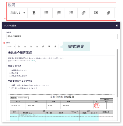 タスクの説明をリッチテキスト形式で記載できるようになりました。